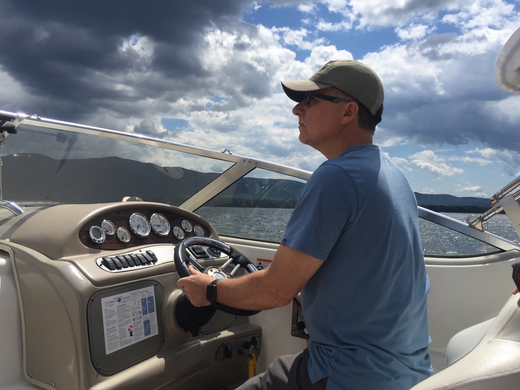 A few dozen boats are milling around in the starting area before the final countdown to the start. Sam was crewing the foredeck position so he’s standing on the deck just forward of the mast. Another boat sails by, one of the biggest and fastest in our division, about twice the size and speed of my boat. Sam apparently makes eye contact with the foredeck crew on the bigger boat.